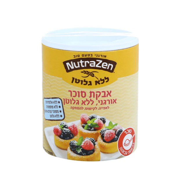 אבקת סוכר אורגני, נקייה וללא גלוטן, להמתקה וקישוט טבעי. ללא אלומיניום.