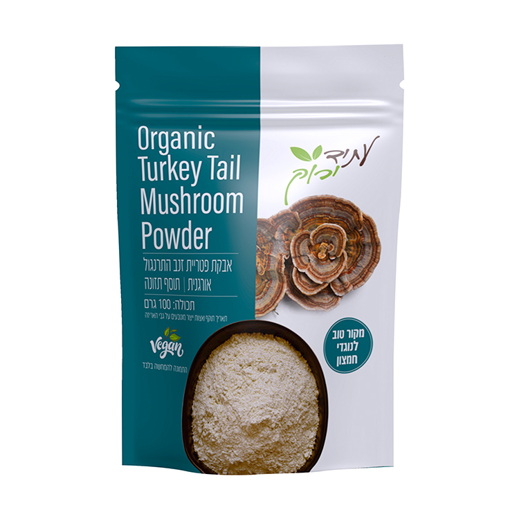 אבקת פטריית זנב התרנגול האורגנית מופקת מפטריית טרמטס (קוריולוס), פטרייה יערית מרובת גוונים המזוהה עם שכבות צבע המזכירות את זנב תרנגול ההודו. האבקה עשירה בסיבים פרה־ביוטיים טבעיים ומכילה רכיבים צמחיים שלפי המסורות העתיקות עשויים לתמוך באיזון כללי ובתפקוד מערכת העיכול. בזכות טעמה הניטרלי ומרקמה הדק, היא משתלבת בקלות במגוון רחב של מאכלים - משייקים ותבשילים ועד מאפים, חטיפים וממרחים טבעיים.