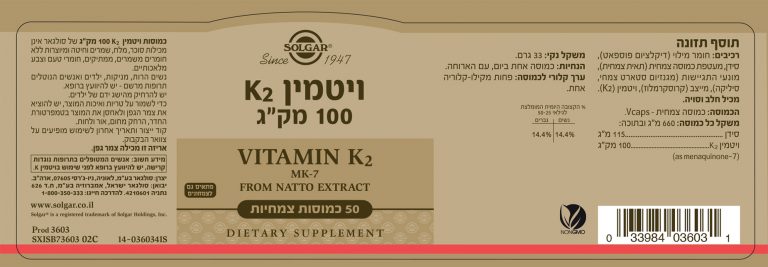 ויטמין K2 של סולגאר הוא תוסף תזונה מתקדם המבוסס על הפטנט הרשום MenaQ7®, רכיב שאיכותו ויעילותו הוכחו ביותר מ-20 מחקרים קליניים. המחקרים העדכניים מדגישים את תפקידו המכריע של ויטמין K2 בתהליך הטמעת הסידן בעצמות, מה שהופך אותו לרכיב חיוני לשמירה על צפיפות העצם ובריאות השלד. כל כמוסה מספקת מינון של 100 מק"ג ויטמין K2 בצורתו הטבעית והפעילה ביותר (MK-7), בתוספת סידן לחיזוק הפורמולה. בשימוש של כמוסה אחת ביום בלבד, ניתן להבטיח אספקה מדויקת ואיכותית של הוויטמין לשמירה על חיוניות הגוף לאורך זמן.