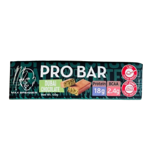 חטיף חלבון שוקולד דובאי של מקס ברנר, עשוי שוקולד חלב אמיתי וממולא בפיסטוק וקדאיף, עם חלבון מועשר ופתיתי סויה קראנצ’יים. כל ביס משלב מרקם קראנצ’י וטעם עשיר, ליצירת נשנוש מזין ומפנק. מכיל 18 גרם חלבון.