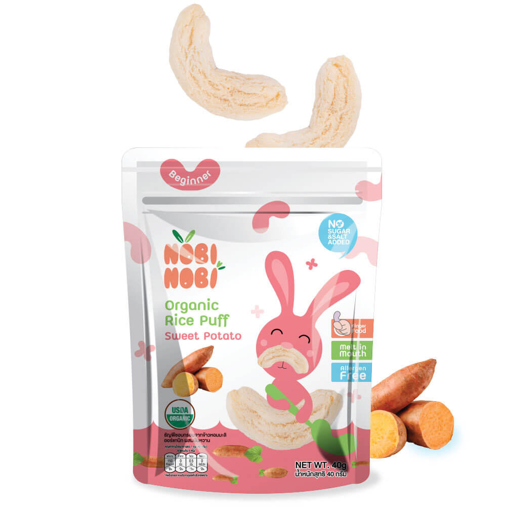 חטיף אורגני לתינוקות על בסיס אורז יסמין מלא בטעם בטטה, עם מרקם עדין הנמס בפה וצורה מהנה המעודדת חקירה ולמידת אכילה עצמאית. מתאים לשלב המעבר למזון מוצק ומיוצר מרכיבים אורגניים בלבד, ללא תוספות מיותרות.