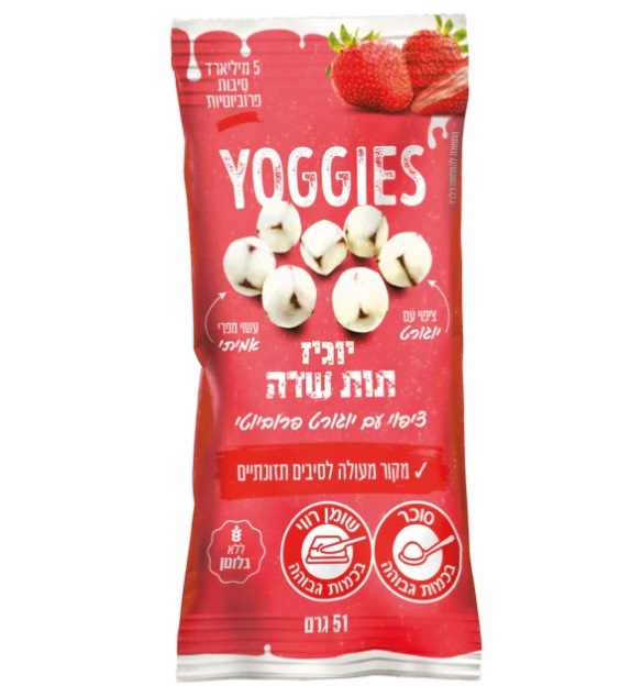 יוגיז תות שדה הוא חטיף המשלב תותים אמיתיים בציפוי יוגורט נימוח. פתרון נוח וזמין לארוחת ביניים לילדים בבית הספר, בגינה או כפינוק קל בבית.