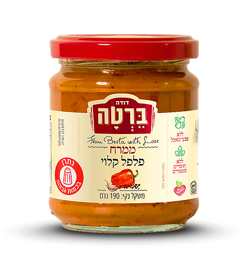 ממרח פלפל קלוי במרקם קטיפתי וטעם ביתי מלא נוכחות. משתלב כממרח, כתוספת לבישול או כבסיס לרטבים, ומעשיר כל ארוחה בגוון עמוק ומעושן קלות. ללא צבעי מאכל