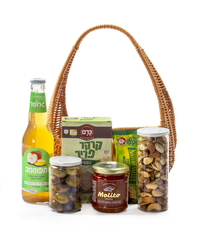 מארז חגיגי המוגש בסלסילת קש קלאסית עם ידית נשיאה גבוהה. שילוב עשיר של טעמים פיקנטיים ונשנושים איכותיים, היוצרים משלוח מנות מלא בסטייל ובאווירה של טבע.