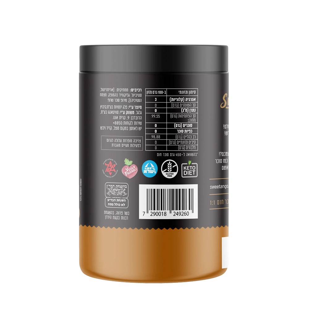 תחליף טבעי לסוכר החום, עשוי מ-100% רכיבים מהטבע וללא סוכר. מתאים למתיקות בקפה, תה, קינוחים ורוטבים, עם טעמו העשיר של סוכר חום רגיל - אך בלי השפעה על רמת הסוכר בדם. המוצר מגיע בצנצנת נוחה העשויה מ-100% פלסטיק ממוחזר, לשמירה על איכות הסוכר ולשימוש יום-יומי.