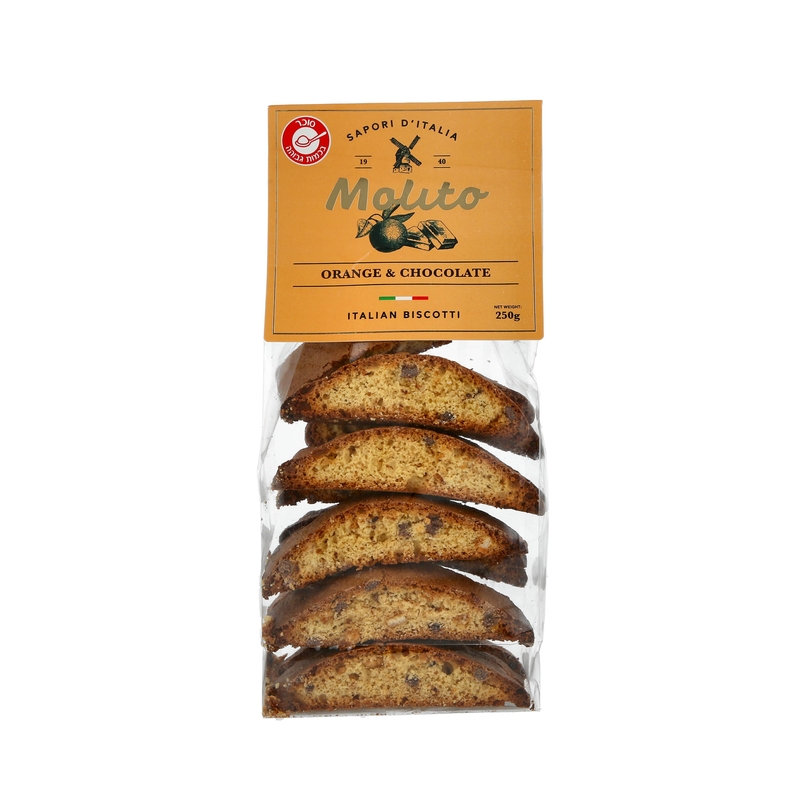 ביסקוטי איטלקי פריך עם שוקולד מריר ותפוז, בטעם עשיר ומאוזן המשלב עומק שוקולדי עם ארומה הדרית מעודנת. מתכון מסורתי ואפייה קלאסית יוצרים עוגייה יבשה ופריכה, מושלמת לצד משקאות חמים או כהגשה מוקפדת לאחר הארוחה.