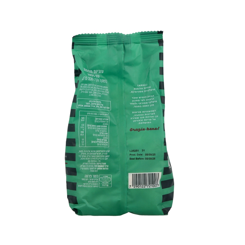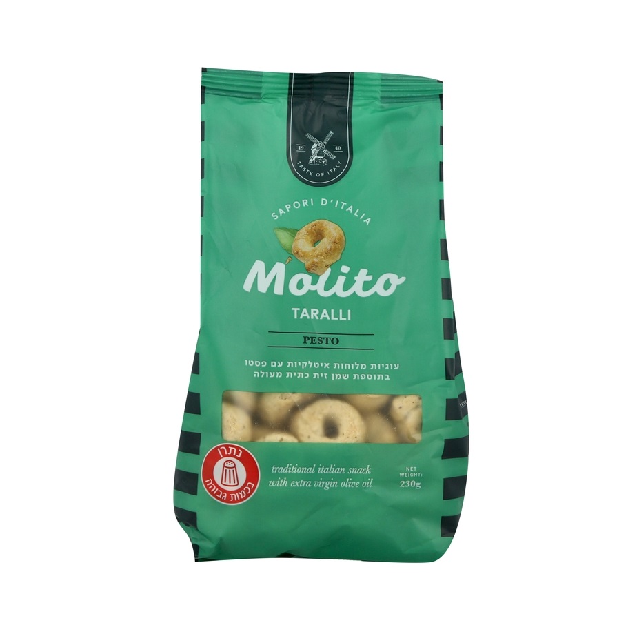 עוגיות אפויות בסגנון איטלקי קלאסיעם פסטו ושום. הבצק עובר הרתחה לפני האפייה, תהליך מסורתי התורם למרקם פריך במיוחד ולגוון זהוב. עשויות מקמח חיטה, שמן זית ותיבול מדויק, ומציעות שילוב מאוזן של חריפות עדינה וטעם ים־תיכוני.