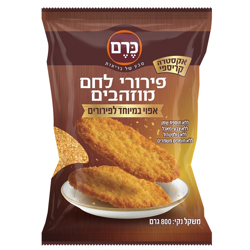 פירורי לחם מוזהבים של המותג כרם הם מוצר מוכן לשימוש קולינרי, טבעי ואיכותי, ללא שמן, ללא צבעי מאכל, ללא כולסטרול וללא חומרים משמרים. אידיאלי לציפוי, אפייה או טיגון.