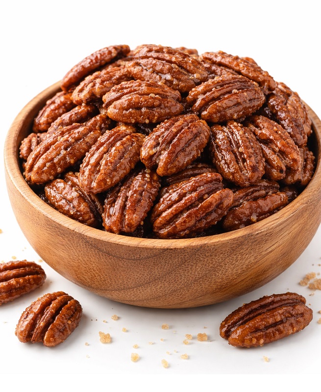 פקאן מסוכר תוצרת בית, פריך ומפנק, עם ציפוי סוכר עדין שמדגיש את טעמו הטבעי של האגוז. השילוב בין הקרמליות למרקם הקראנצ'י הופך אותו לחטיף מושלם, אידיאלי לנשנוש, שילוב בבוקר או כקישוט על קינוחים.