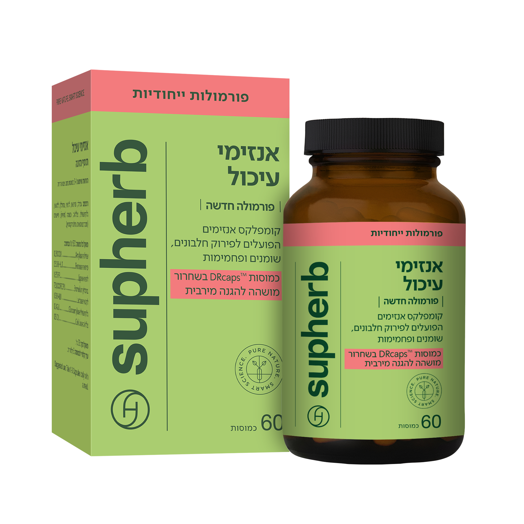 תוסף אנזימי עיכול בשחרור מושהה מציע פורמולה מעודכנת ומאוזנת, הכוללת: עמילאז, לקטאז, פרוטאז, ליפאז, אינברטאז, פקטינאז וברומלין. העדכון בהרכב מביא את המוצר בהתאם להנחיות משרד הבריאות, עם הסרת גלוקועמילאז וצלולאז והוספת אינברטאז ופקטינאז – אנזימים המקדמים פירוק יעיל של פחמימות וסיבים.