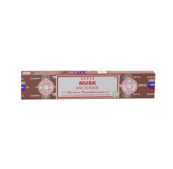 קטורת SATYA MUSK מפיצה ניחוח עץ ותבלינים עשירים המשרים תחושת חיבור ורוגע. מתאימה להדלקה בבית או בחלל עבודה למיקוד ולשלווה.