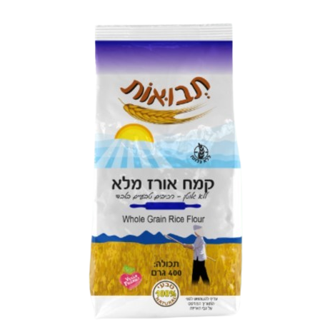 קמח אורז מלא טבעי מבית תבואות, מיוצר מ־100% אורז מלא ואינו מכיל גלוטן. מתאים למגוון שימושים באפייה ובבישול, ומשמש תחליף קליל ובריא לקמח רגיל.