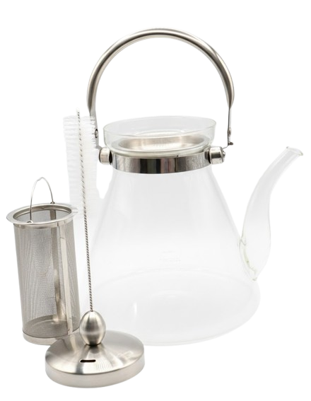 קנקן חליטה מזכוכית איכותית, עמיד לחום, לשימוש על גז וכיריים חשמליות. כולל מסננת נירוסטה נשלפת לחליטת עלי תה או צמחים. קל לניקוי, עמיד במדיח כלים, מתאים לשימוש יומיומי.
