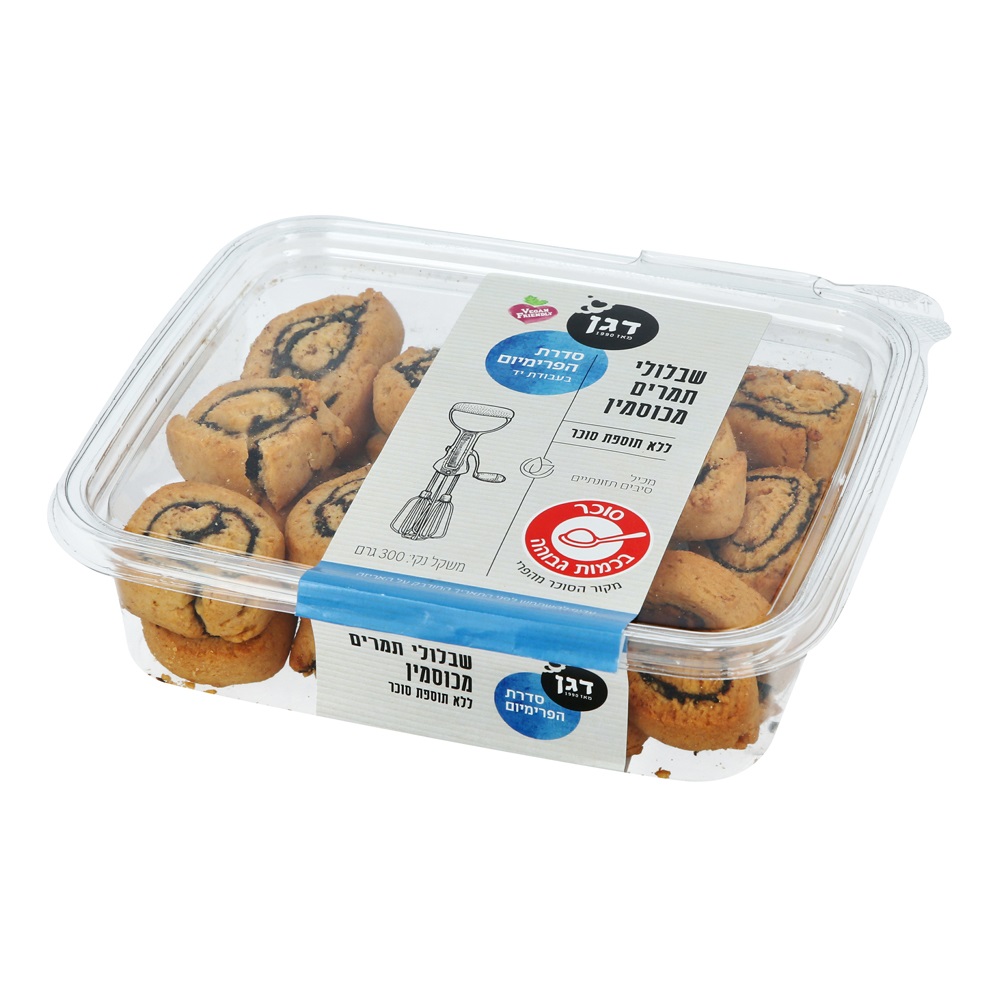 שבלולי כוסמין במילוי תמרים, פריכים וטעימים, אידיאליים כנשנוש לצד כוס קפה או תה.