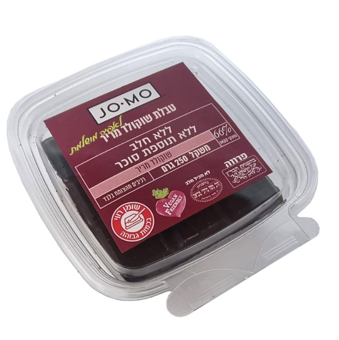 שוקולד מריר מותאם לאפייה, בעל מידת מתיקות מדויקת, עשוי רכיבים טבעיים מהצומח וללא חומרים משמרים, צבעי מאכל או הנדסה גנטית. טבעוני, ללא גלוטן, עם ערך גליקמי נמוך ותוספת סיבים תזונתיים.