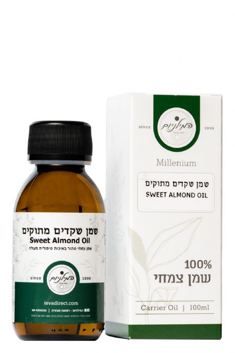 שמן שקדים מתוקים בכבישה קרה , שמן צמחי טהור, טבעי ומזין, מתאים למריחה ישירה על עור יבש או רגיש, או לשימוש בקוסמטיקה ביתית ישירות או כשמן בסיס למוצרים אחרים.