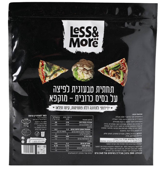 תחתית פיצה כרובית טבעונית, מבוססת רכיבים טבעיים וללא גלוטן, אידאלית לתזונה קטוגנית, פליאו או כל תפריט דל-פחמימות. התחתית קלה, מזינה ועשויה מכרובית טרייה, ללא תוספת סוכר וללא מרכיבים מיותרים. מעניקה בסיס מצוין לפיצה ביתית טעימה, עם ערכים תזונתיים מרשימים ותחושת קלילות.